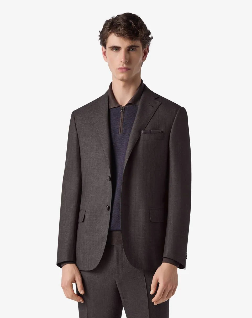 CORNELIANI BROWN STRIPED S140s WOOL TWILL SUIT