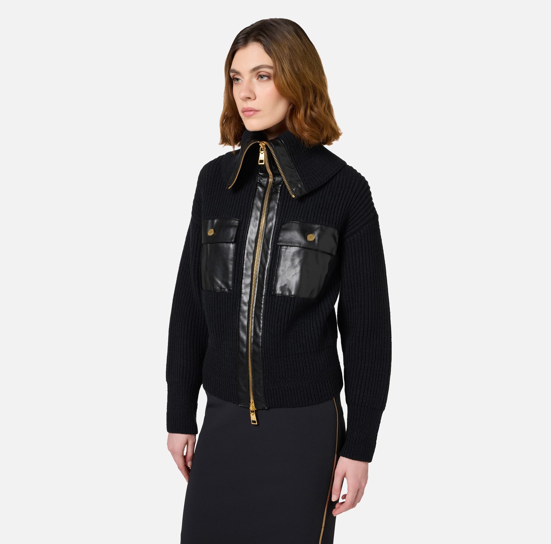 ELISABETTA FRANCHI FISHERMAN'S RIBBED MAXI ZIP CARDIGAN