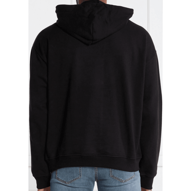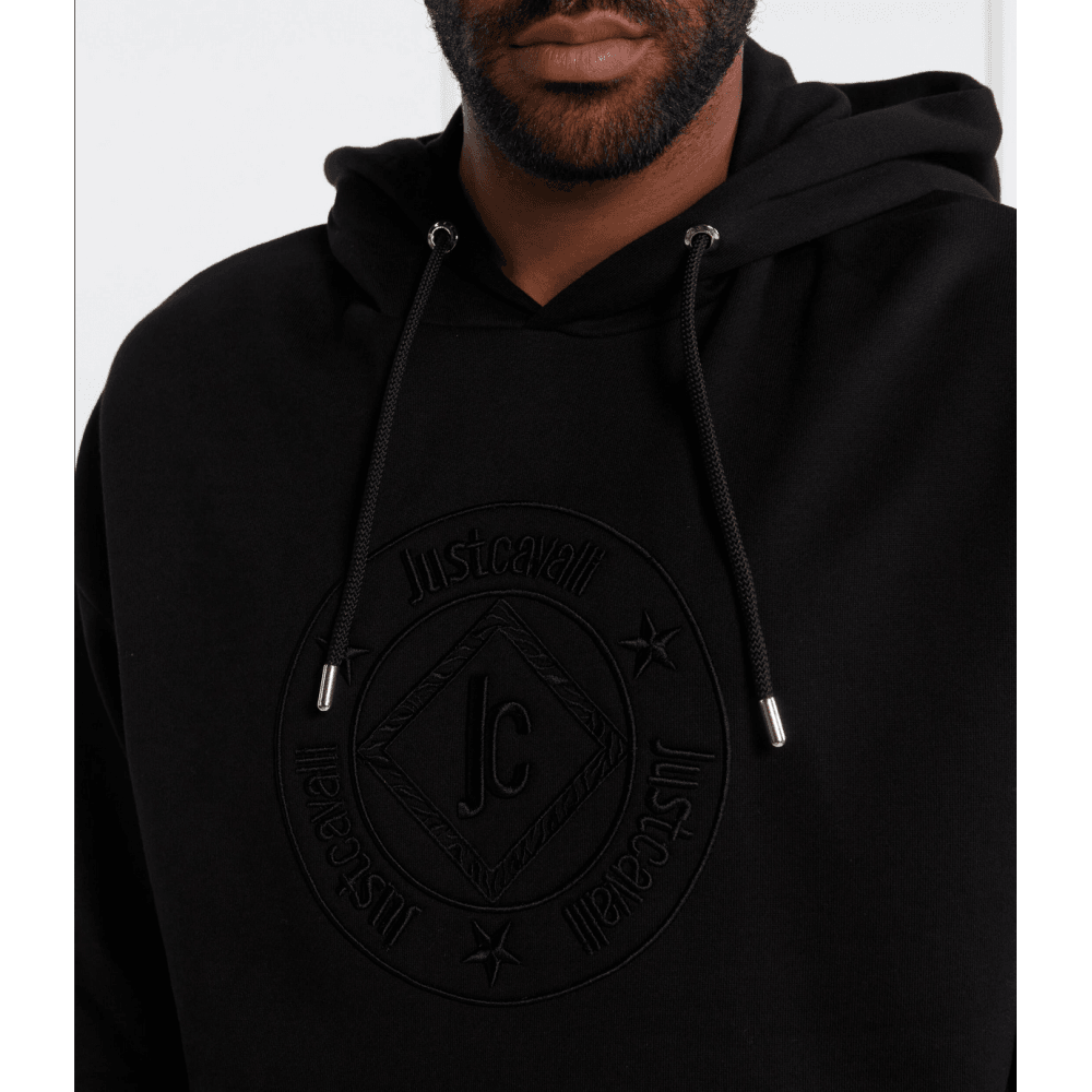 JUST CAVALLI EMBROIDERED ROUND LOGO PULLOVER BLACK HOODIE